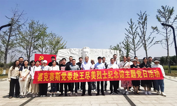 在“七一”建黨節即將到來之際,為高標準、高質量開展黨員教育活動,聆聽紅色故事、感受革命精神,2024年6月15日,賽克賽斯黨委組織各支部黨員赴諸城王盡美烈士紀念館開展主題黨日活動,踐行初心、擔當使命,傳承偉大建黨精神。賽克賽斯黨委副書記張傳軍參加活動,濟南高新區齊魯軟件園萬達片區黨委黨建指導員宋星鵬、黨建專員段亞楠特邀出席活動。