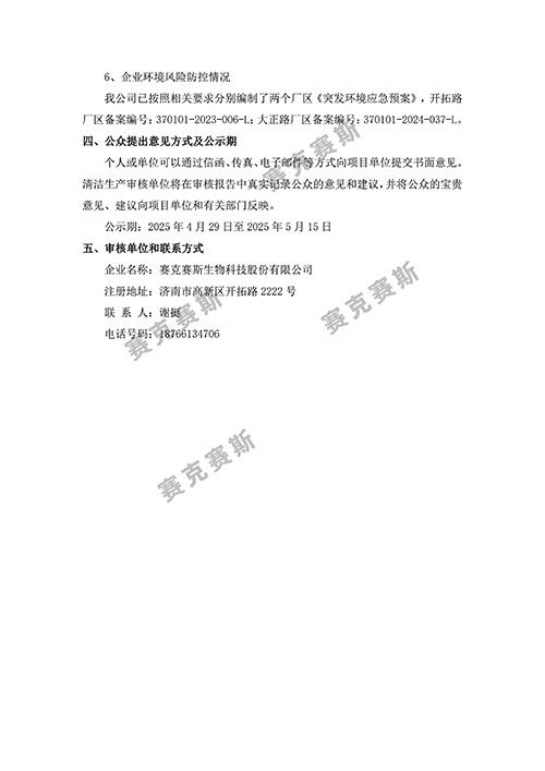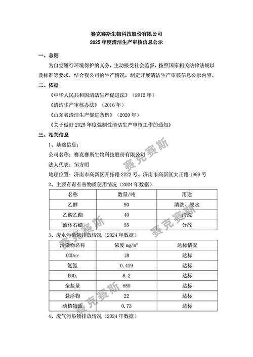 賽克賽斯生物科技股份有限公司2025年度清潔生產審核信息公示更新時間:2025-04-29  瀏覽次數: