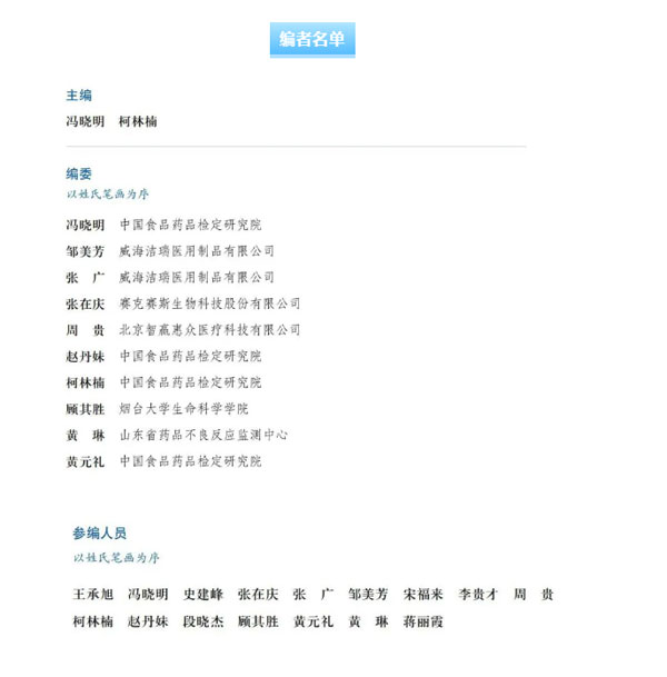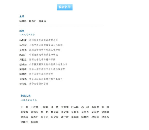 我公司在醫用羧甲基殼(ke)聚糖材料(liao)(liao)(liao)方面(mian)已有十(shi)余年(nian)研究,對該材料(liao)(liao)(liao)的(de)生(sheng)產(chan)、質(zhi)量控制、生(sheng)物(wu)(wu)安(an)全性評價(jia)、臨床(chuang)應用及(ji)產(chan)品(pin)注冊均有了較深入的(de)研究,并(bing)積極參(can)(can)與(yu)(yu)到“海(hai)洋(yang)生(sheng)物(wu)(wu)醫用材料(liao)(liao)(liao)大系”叢書的(de)編(bian)寫中(zhong),其(qi)中(zhong),公司總工程(cheng)師趙成如(ru)作(zuo)為第(di)2卷《殼(ke)聚糖基海(hai)洋(yang)生(sheng)物(wu)(wu)醫用材料(liao)(liao)(liao)》的(de)主編(bian),張春霞(xia)作(zuo)為參(can)(can)編(bian)人(ren)員(yuan)參(can)(can)與(yu)(yu);閆(yan)永麗參(can)(can)與(yu)(yu)第(di)4卷《海(hai)洋(yang)生(sheng)物(wu)(wu)醫用材料(liao)(liao)(liao)臨床(chuang)應用》的(de)編(bian)寫,張在慶作(zuo)為第(di)6卷《海(hai)洋(yang)生(sheng)物(wu)(wu)醫用材料(liao)(liao)(liao)監管與(yu)(yu)評價(jia)》編(bian)委參(can)(can)與(yu)(yu)。