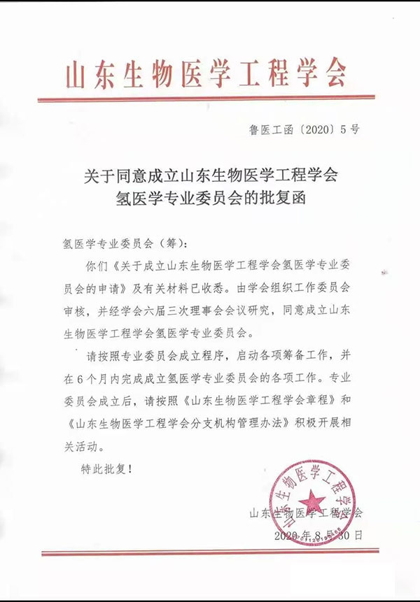 山東第一醫科大學附屬腫瘤醫院牛洪欣教授和山東第一醫科大學第一附屬醫院劉元水教授擔任大會主席。成立大會上,山東第一醫科大學第一附屬醫院劉元水教授當選為山東生物醫學工程學會首屆氫醫學專業委員會主任委員。山東第一醫科大學附屬腫瘤醫院牛洪欣教授、山東啟元慢病研究所牟月新主任、山東省胸科醫院于學燕教授等16人當選為副主任委員。