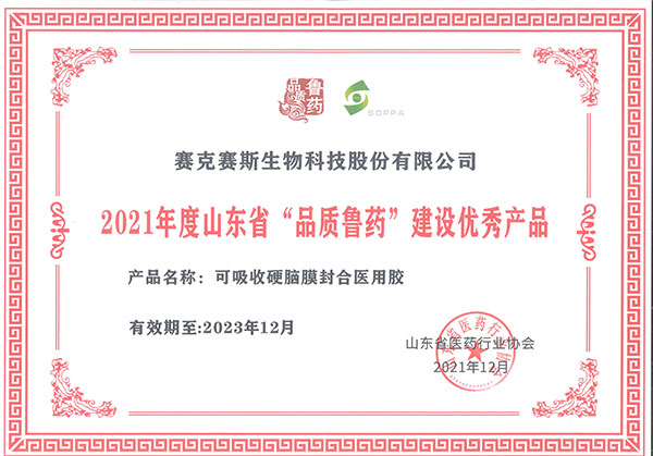 賽(sai)克(ke)賽(sai)斯生物(wu)科技股份有限公司(si)榮獲2021年度山東省“品(pin)質魯藥”建(jian)設示范(fan)企(qi)業,公司(si)的兩(liang)個產品(pin)“復合(he)微孔多聚(ju)糖止血(xue)粉”、“可吸(xi)收硬腦(nao)膜封合(he)醫用膠”榮獲2021年度山東省“品質魯(lu)藥”優秀產品獎(jiang)。