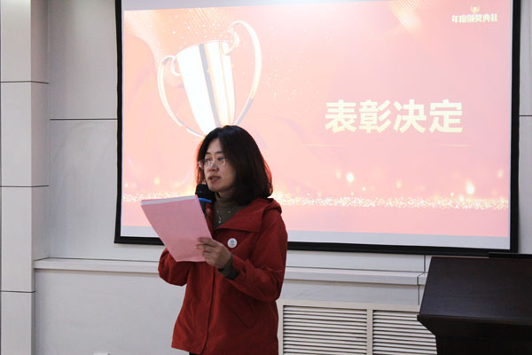 (總(zong)經理(li)助理(li)兼人力資源(yuan)總(zong)監(jian)劉麗(li)宣讀表彰決(jue)定)