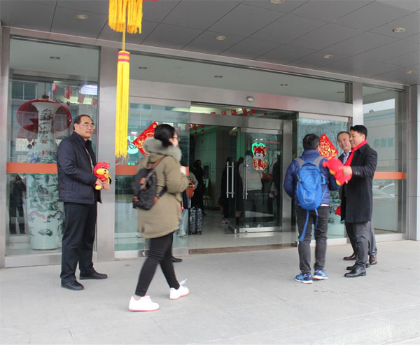 公司(si)董事長(chang)鄒方明提前(qian)來(lai)到公司(si),在辦公樓前(qian)迎接每(mei)一(yi)位員(yuan)工,將誠(cheng)摯的新春祝福送給大家。