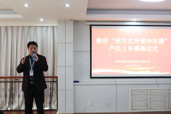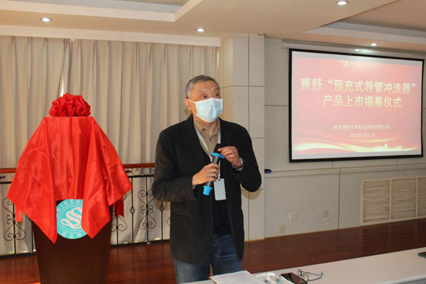 2022年3月31日(ri),在公(gong)司(si)辦公(gong)樓二樓培訓室(shi)舉行了簡約而又隆重(zhong)的賽舒“預(yu)充式導管沖洗器”產品上(shang)市揭(jie)幕(mu)儀式。本著“活動(dong)從(cong)簡”的原(yuan)則,公司核(he)心管理(li)層及項目參與(yu)人(ren)員參加了(le)揭(jie)幕(mu)儀式。公司董事(shi)長鄒方明(ming)出席揭(jie)幕(mu)儀式,總經理(li)柏(bo)桓主持儀式活動(dong)。