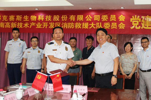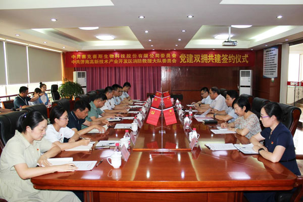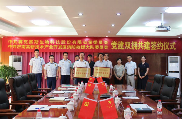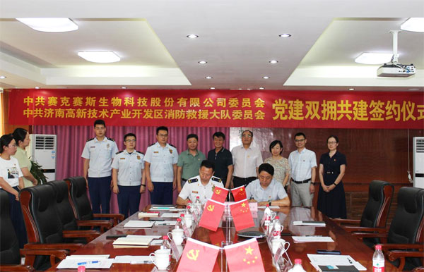 2022年6月22日(ri),中共賽(sai)克(ke)(ke)賽(sai)斯生物科技股份有限公司委(wei)(wei)(wei)員(yuan)會(hui)、中共濟(ji)(ji)南(nan)高(gao)新技術(shu)產業開(kai)發區消防救(jiu)援大(da)(da)隊委(wei)(wei)(wei)員(yuan)會(hui)“黨(dang)建(jian)(jian)雙擁共建(jian)(jian)”簽(qian)(qian)約(yue)(yue)儀式活(huo)動在(zai)賽(sai)克(ke)(ke)賽(sai)斯辦公樓三樓會(hui)議室(shi)隆重舉行。濟(ji)(ji)南(nan)高(gao)新區消防救(jiu)援大(da)(da)隊黨(dang)委(wei)(wei)(wei)書(shu)記、政治(zhi)教導(dao)員(yuan)趙立洲,黨(dang)委(wei)(wei)(wei)委(wei)(wei)(wei)員(yuan)、副大(da)(da)隊長韓(han)振華(hua)參加簽(qian)(qian)約(yue)(yue)活(huo)動;賽(sai)克(ke)(ke)賽(sai)斯黨(dang)委(wei)(wei)(wei)書(shu)記、董事長鄒方明,黨(dang)委(wei)(wei)(wei)副書(shu)記張(zhang)傳軍參加簽(qian)(qian)約(yue)(yue)活(huo)動;濟(ji)(ji)南(nan)高(gao)新區齊魯(lu)軟件園(yuan)綜合黨(dang)工委(wei)(wei)(wei)委(wei)(wei)(wei)員(yuan)張(zhang)鼎華(hua),齊魯(lu)軟件園(yuan)萬達片區黨(dang)委(wei)(wei)(wei)黨(dang)建(jian)(jian)指導(dao)員(yuan)宋星鵬出(chu)席并見(jian)證簽(qian)(qian)約(yue)(yue)活(huo)動。本次(ci)簽(qian)(qian)約(yue)(yue)活(huo)動由賽(sai)克(ke)(ke)賽(sai)斯黨(dang)委(wei)(wei)(wei)副書(shu)記張(zhang)傳軍主持。