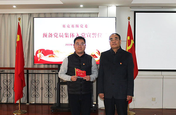 2022年11月(yue)16日(ri),賽(sai)(sai)克賽(sai)(sai)斯黨委(wei)在(zai)黨員活動室(shi)組織舉行(xing)了(le)莊嚴的預(yu)備(bei)黨員入(ru)黨宣誓儀式活動,新發展的預(yu)備(bei)黨員及部分老黨員參加了(le)此次活動。賽(sai)(sai)克賽(sai)(sai)斯黨委(wei)副(fu)書記張傳軍同志出席會議(yi)。