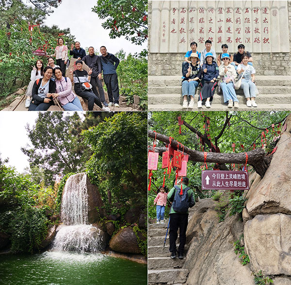 “早知有盤山,何必下江南”,還未至盤山風景區,此話已是如雷貫耳。走進盤山風景區,這里風光旖旎,景色迷人,綠水青山,一派人間仙境,歷史上眾多帝王將相、文人墨客競游于此。遠赴人間驚鴻宴,一睹人間盛世顏,潺潺流淌的溪水、噴流而下的瀑布,山間的古剎,一屋一檐都是禪意如畫的風景。一路行,一路看,山腳下流水潺潺,鳥語花香;山腰上,古木參天,林靜山幽;山頂上,云海茫茫,群山隱約。伴著身邊樹葉的婆娑聲,鳥鳴悅耳聲,一步步攀登,山間的氣流仿佛穿透了身體。登上山頂,系一塊紅牌,許一樁心愿,只愿今日登上靈峰圣境,從此人生盡是坦途!