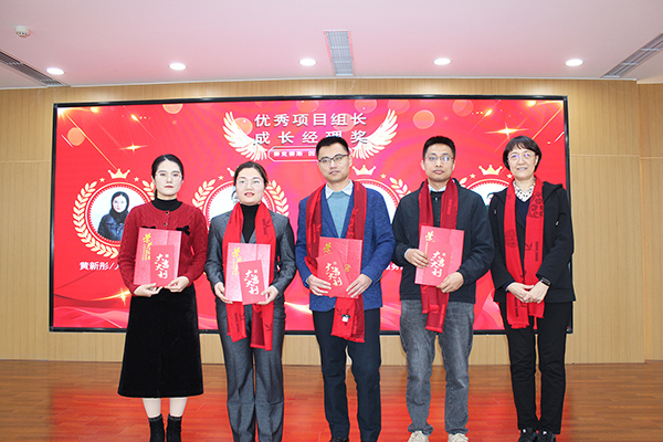 接著由公司總經理助理兼人力資源總監劉麗宣讀公司表彰決定,隨后由公司領導分別上臺對獲得年度新人獎、優秀員工獎、先進工作者、優秀項目組長/成長經理獎的員工進行頒獎;對獲得年度創新獎、優秀團隊獎的部門和團隊進行頒獎;為本年度在公司工作滿10年、滿20年的員工頒發長期貢獻獎。